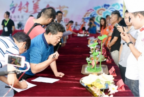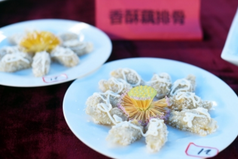 现场共有50家星级农家乐,100多道菜品参加了擂台比试,经过7名专业评委(中国烹饪大师)现场品尝、评比,索河糯香煎藕饼、明珠武昌鱼、农家虾子粉坨等当选蔡甸十大特色名菜,枣莲鸡粥、湖鲜炖长江鮰鱼、索河贡品汤等当选十大创新名菜,藕蒸丰年、芝士莲藕卷、新农牛肉等当选十大传统小吃。